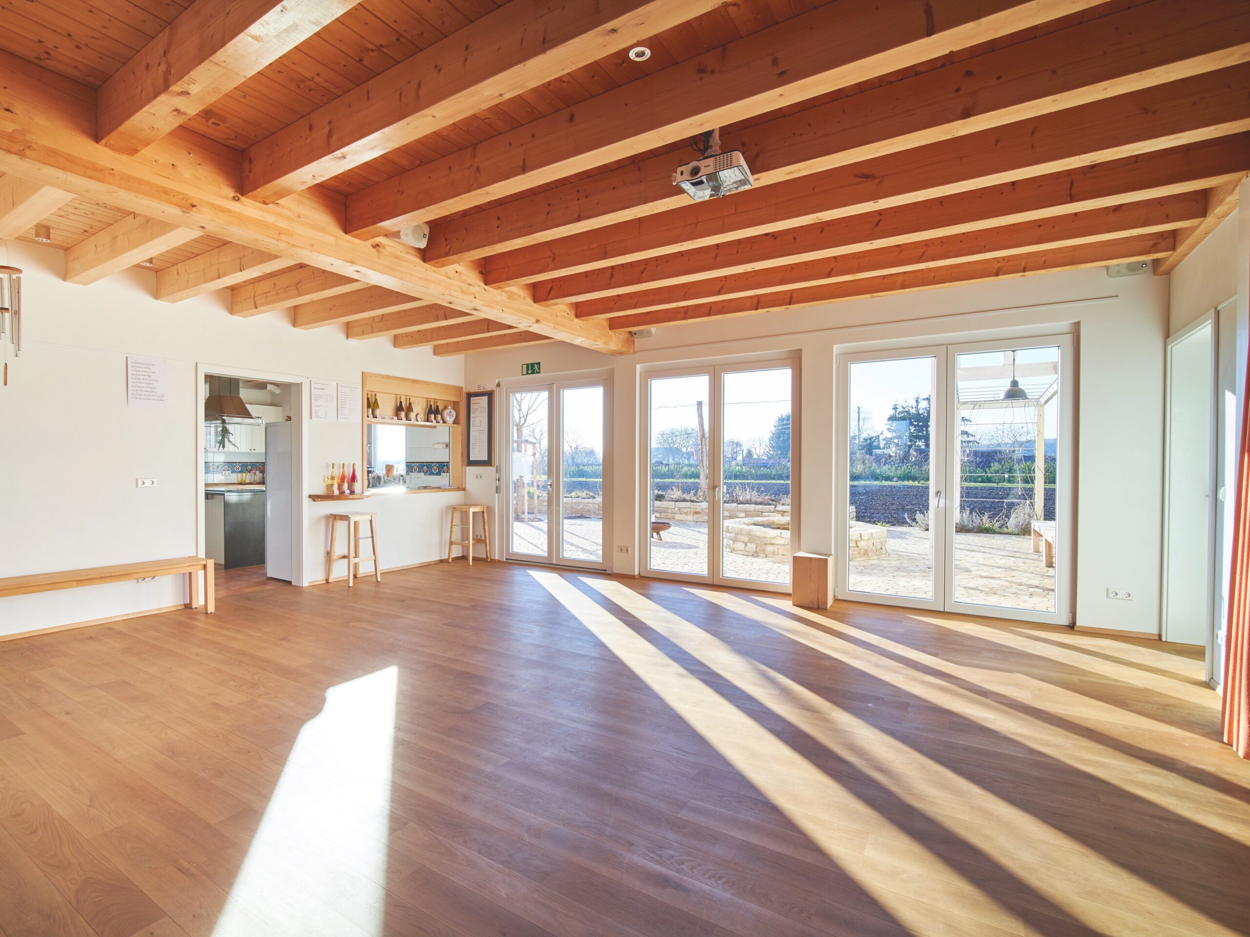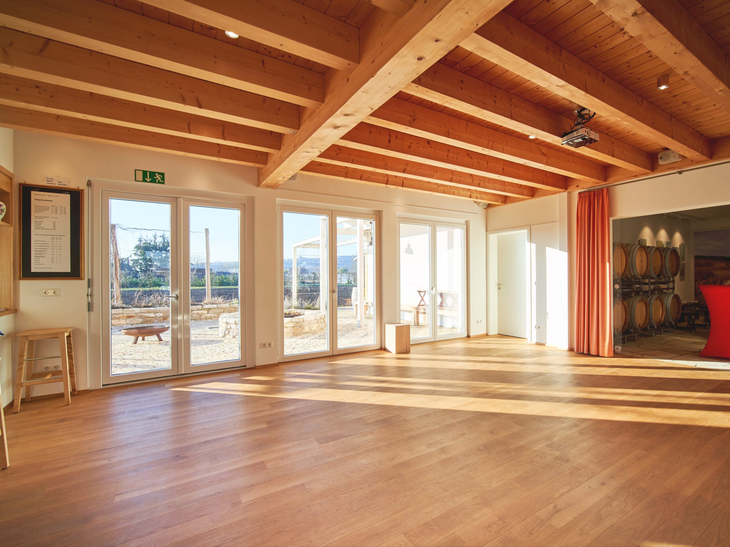 Helle Räume, rustikale Holzbalken und bodentiefe Fenster schaffen ein stilvolles, elegantes Ambiente für eure Hochzeit. Ob feierliches Dinner, ausgelassener Tanz oder entspannte Momente mit euren Gästen – hier wird jeder Augenblick unvergesslich.